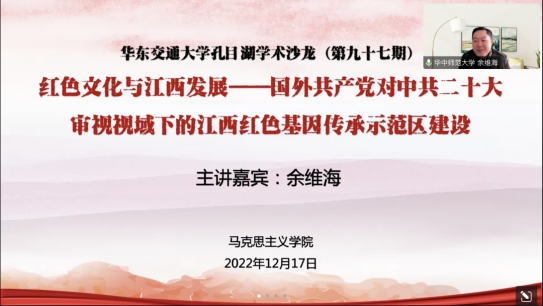 为学习贯彻党的二十大精神,进一步活跃学术氛围,加强学术交流,推动马克思主义理论学科建设。12月17日上午,华中师范大学政治与国际关系学院教授、博士生导师余维海教授以线上方...